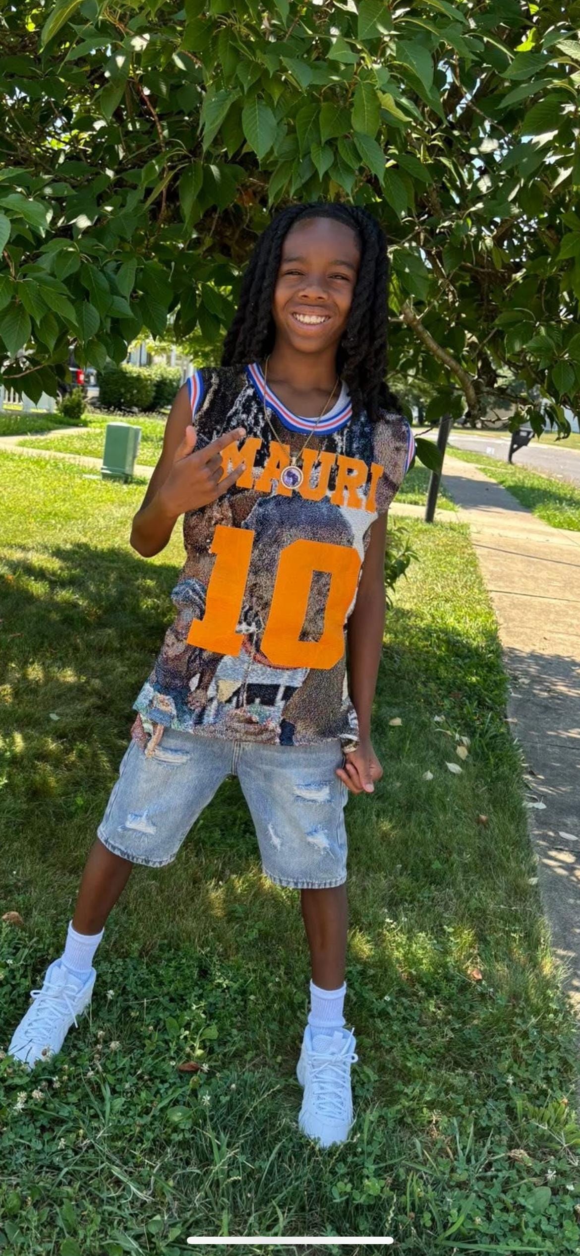 Message Me 12 or less photos that you would like on the jersey , only 3 can be sent at a time. I will choose which photos are best for the design!
